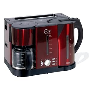 3 apparecchi in 1: macchina da caffè, tostapane e bollitore. Un centro per la colazione compatto e salvaspazio per ogni cucina. Rosso brillante. Con antigoccia e filtro permanente.
